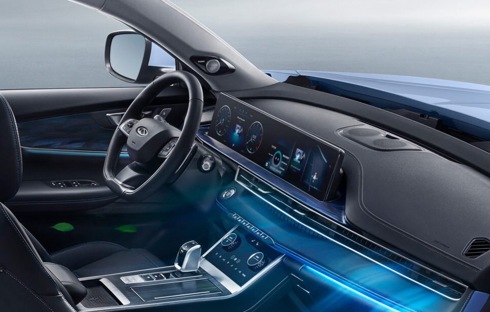 Interior premium con climatizador bi-zona, pantalla dual de 12,3”, cargador inalámbrico de 50W, asientos calefaccionados y ventilados, y techo panorámico.